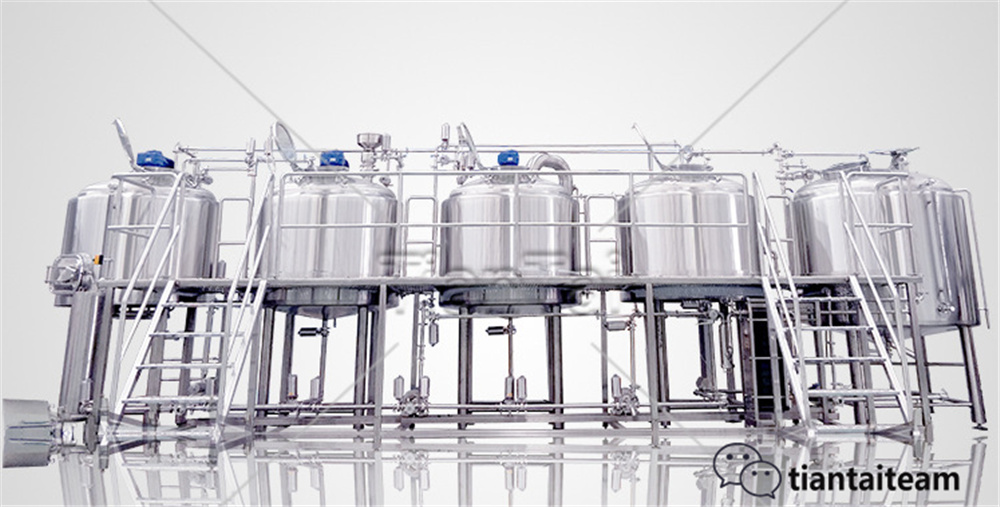 設備配置不同,釀造一批次時間一般7-8小時,按正常的工藝標準間隔4小時投料一次一天最多釀6批次。為了降低初期投資風險,節約成本,選擇多批次釀造不失是一個很好的方法。現在大部分的精釀啤酒廠會選擇四器糖化系統(糖化罐+過濾罐+煮沸罐+回旋沉淀罐)。有一些啤酒廠為了一天多釀造幾批次會增加一臺在暫存罐,另外個別啤酒廠因工藝需求會再增加一臺糊化罐。所以根據自己對產量的需求選擇合適的糖化系統。